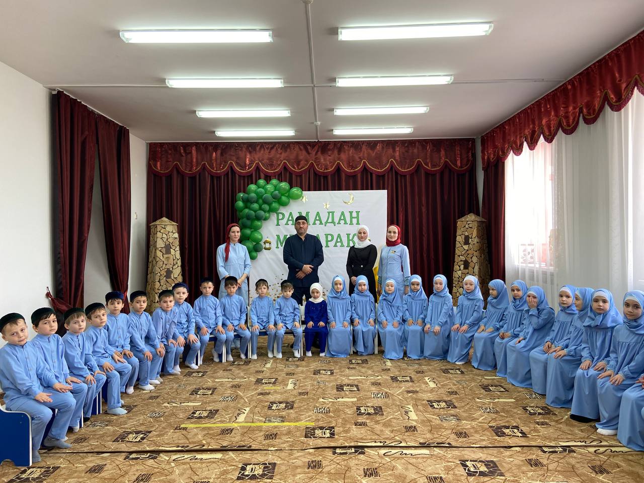 В течение года в МБДОУ проводится работа по духовно-нравственному воспитанию детей. В связи с празднованием Священного месяца Рамадан в ДОУ мероприятие:оформлен фасад здания баннером, посвященным Священному месяцу Рамадан.